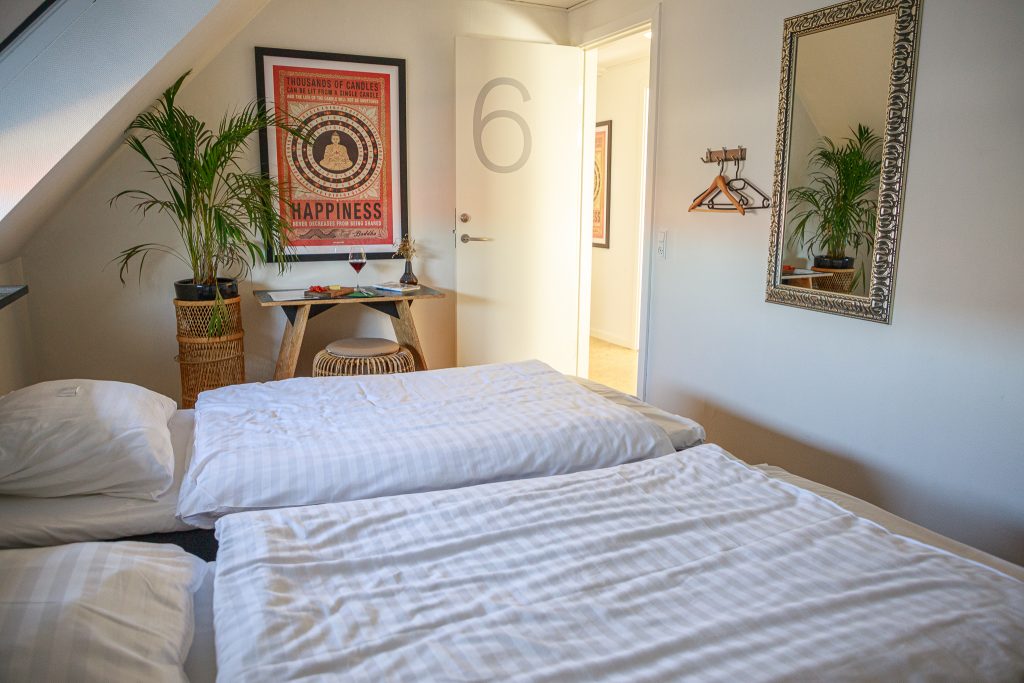 Tæt på hotellet er der flere spisesteder og indkøbsmuligheder, og en kort gåtur på 200 meter, så er man ved Nørrekås Lystbådehavn og smuk lille sandstrand med panoramaudsigt over Rønne bugt. Til hotellet hører også en stor og dejlig ugeneret gårdhave, hvor I som gæster vil kunne nyde solen og slappe af i hængekøjer, spise en let frokost og få en drink eller læse en god bog når I har lyst til det.